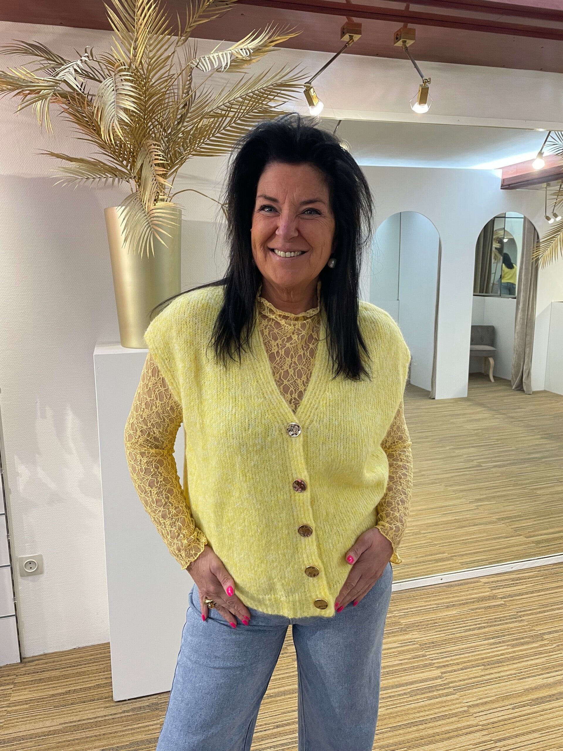 Kantje met gilet geel