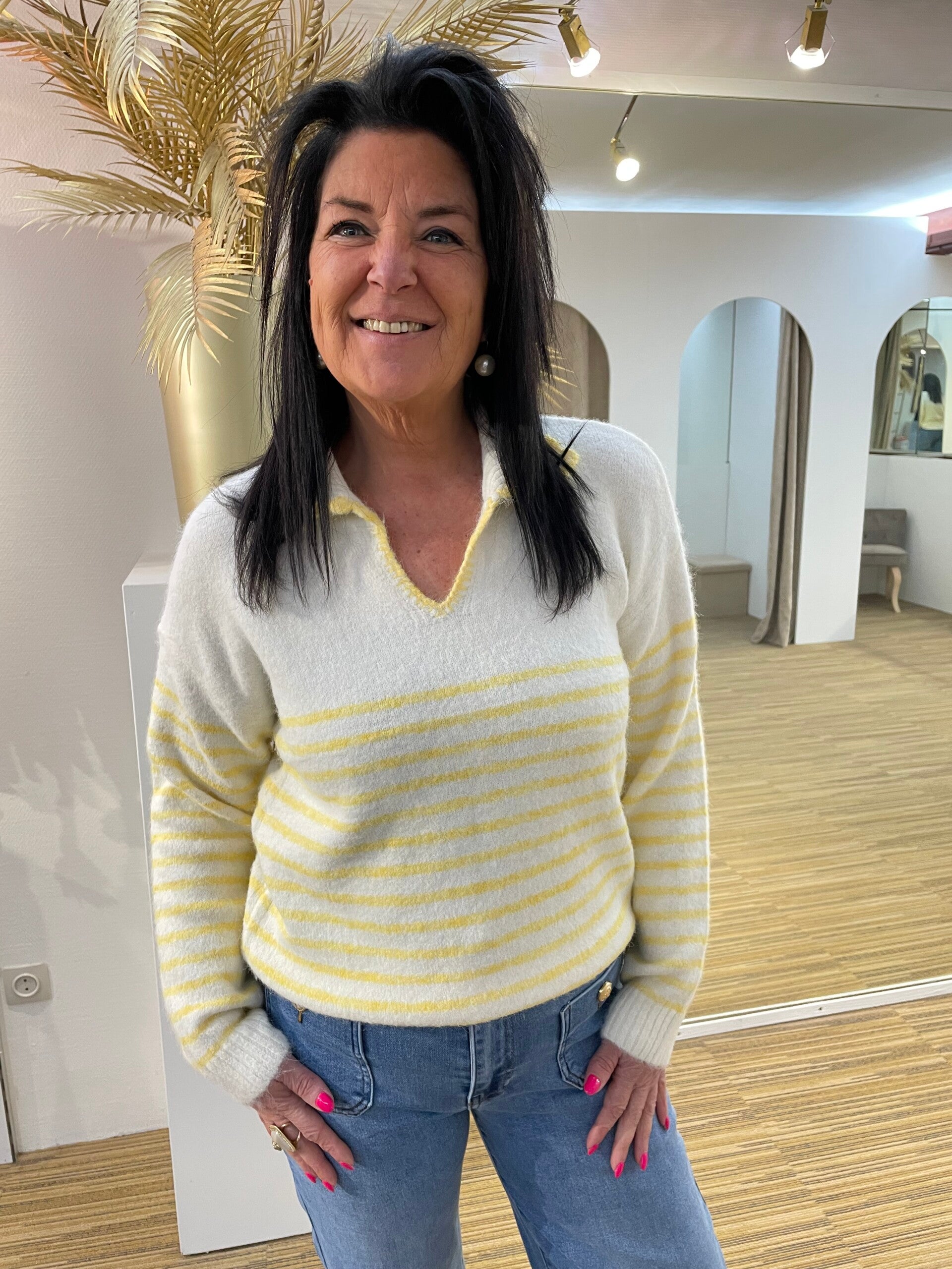 Geel/Wit pulletje mooi kraag