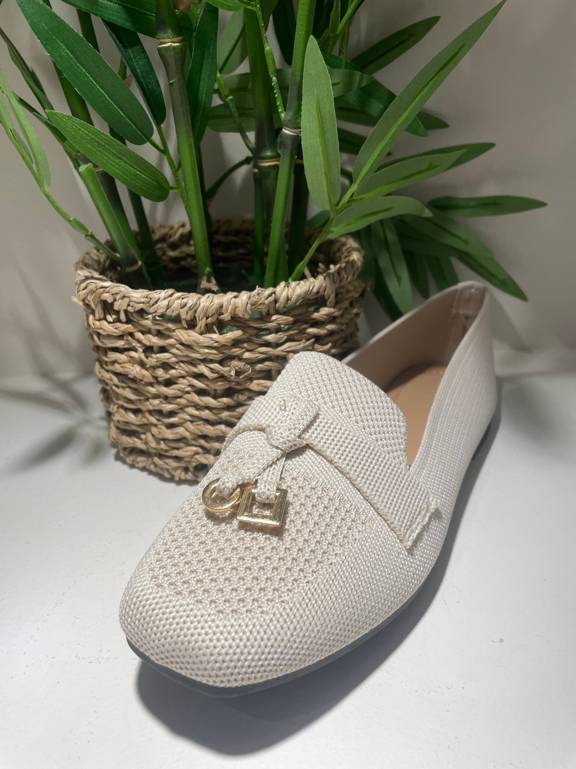 Beige riet mocassins